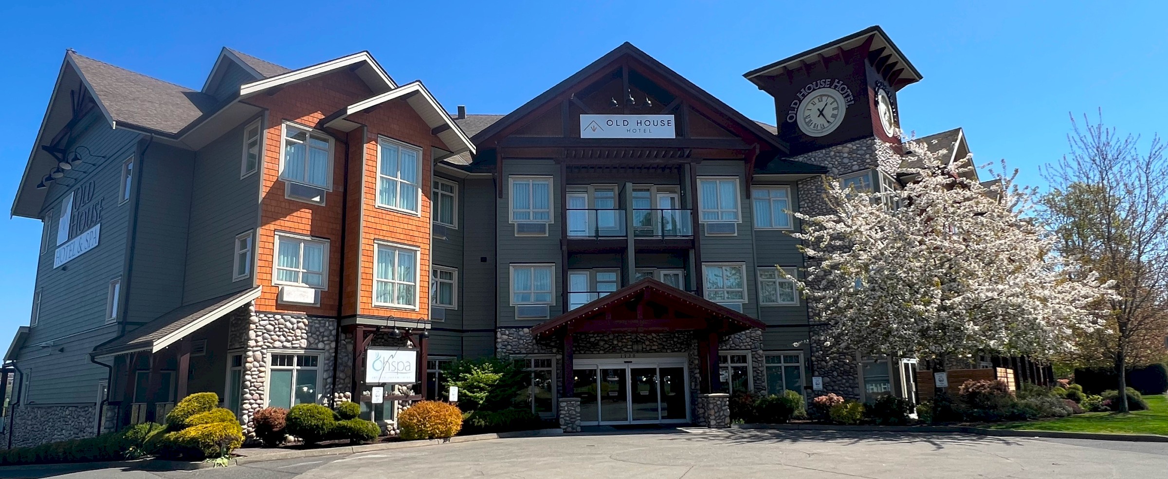 One of Vancouver Island’s most comfortable and welcoming experiences, the Old House Hotel is an all-suite hotel comprised of two West Coast-inspired buildings – Maple and Cedar — set along the Courtenay River. Our West Coast-inspired property features spacious accommodations with petite or full gourmet kitchens, fireplaces, soaker tubs, washers and dryers, comfy beds and numerous little touches that will enhance your stay. Amenities include an outdoor heated pool and hot tub, fitness centre, meeting rooms, an always-popular refreshment centre, Ohspa -- a full-service spa, electric car charging stations and the renown Locals Restaurant. We're pet friendly and located only a few blocks from downtown Courtenay. Within a short drive, you’ll find the Comox International Airport, beaches, hiking, golfing, Mount Washington Resort which features amazing winter and summer activities and countless other adventures.