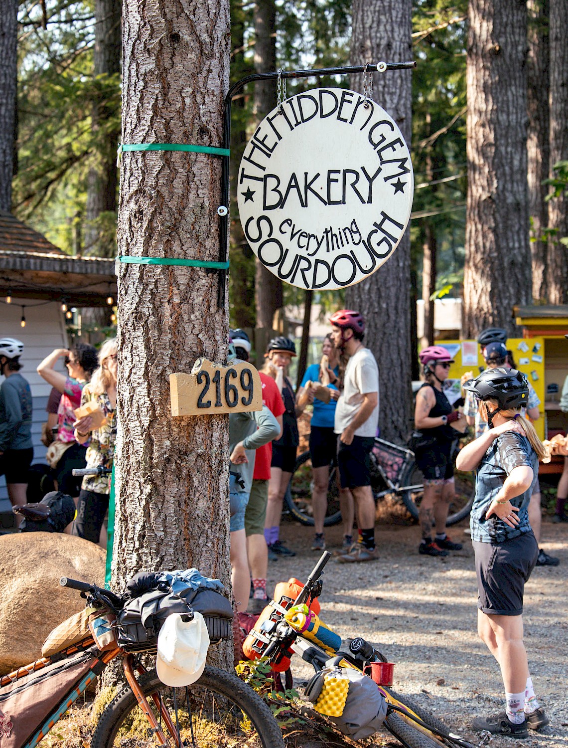 From Miracle Beach, we headed on side roads towards Oyster River, an easy resupply and halfway point for this section of the ride. Jason from The Hidden Gem Bakery spoiled us with a mid-morning treat, and here we feasted on lemon-y sourdough cinnamon buns and coffee. We ordered ours ahead of time for the large group, but we highly recommend stopping by if you’re heading through. Note that they often sell out on weekends, so ride fast(er)!