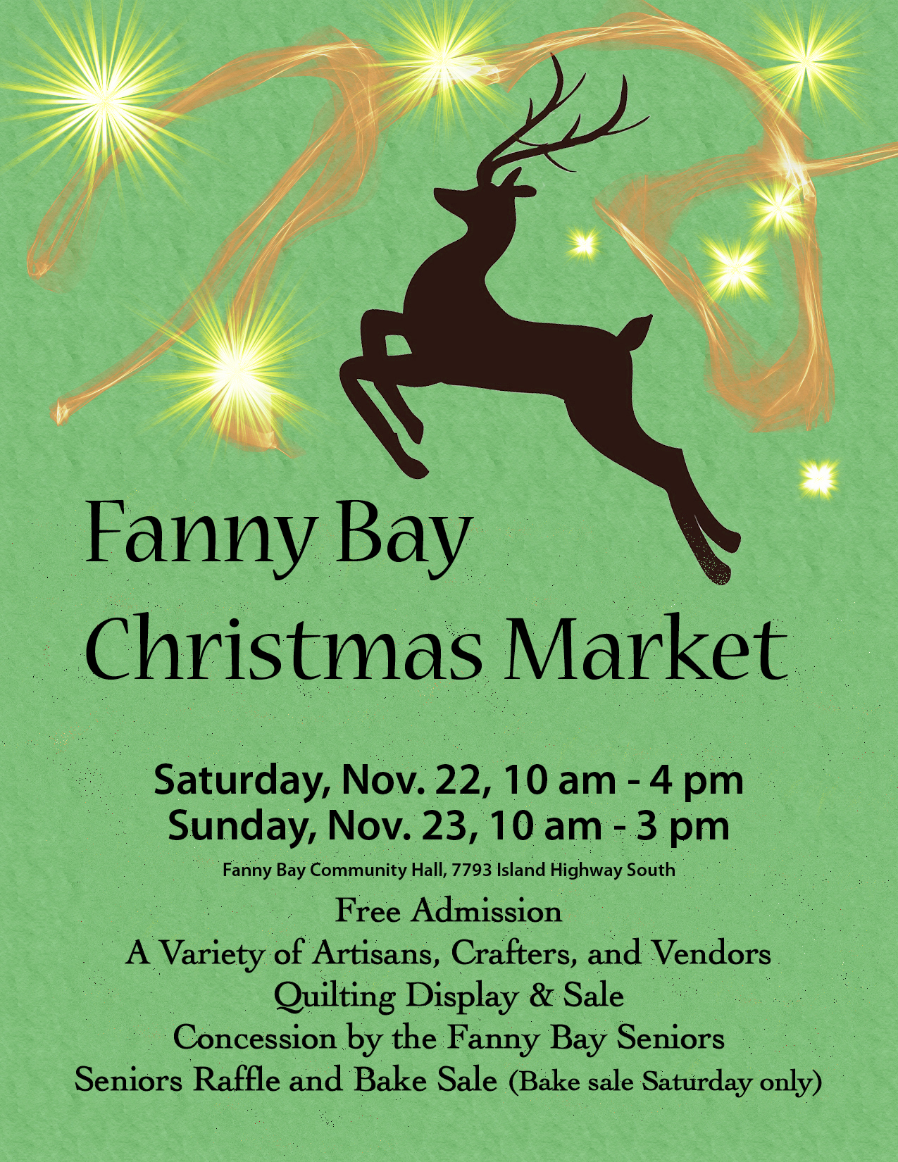 The Fanny Bay Christmas market features handmade products, from edibles to eclectic art, as well as a large quilt display and sale, a bake sale (Saturday only), and raffles.