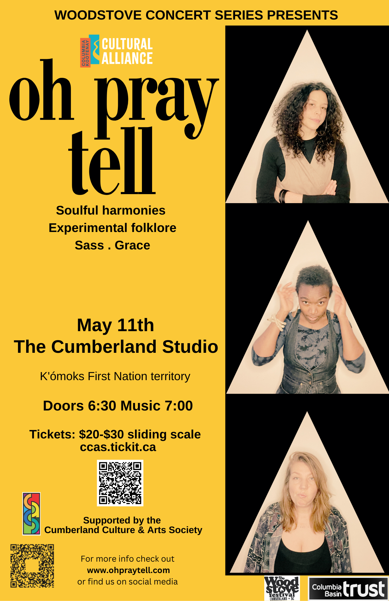 The Woodstove Music & Arts Festival is proud to present a very special Mother's Day performance by Oh Pray Tell at The Cumberland Studio on Sunday May 11th, 2025. This event is graciously supported by the Cumberland Culture & Arts Society. http://ohpraytell.com/