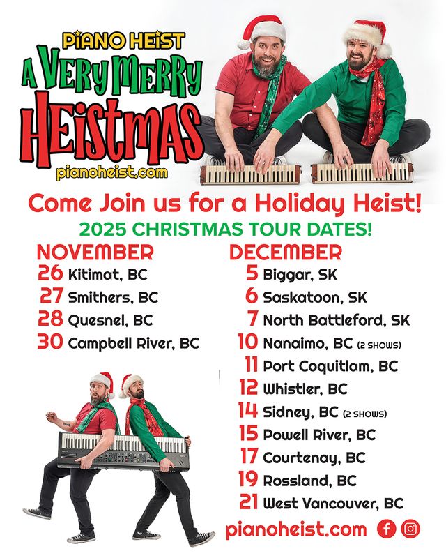 Get ready for a holiday show like no other as Piano Heist brings their brand-new production A Very Merry Heistmas! to Comox Valley