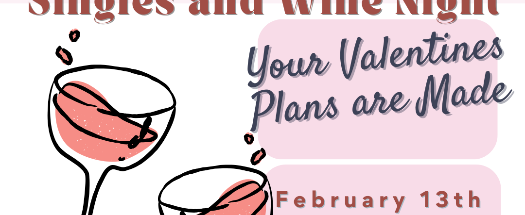 Join us on February 13th at 6pm for an hour of guided wine & cheese pairing followed by wine bar style mix & mingle. Delicious individual charcuterie boards by Laliberté Cheese will be available for purchase as well as wines by the glass or bottle. The Wild Vine, an incredible local Sommelier, will provide educational wine expertise and you’ll have a chance to meet with other singles. Don’t be lonely this Valentines, join us and maybe you’ll meet your special someone!