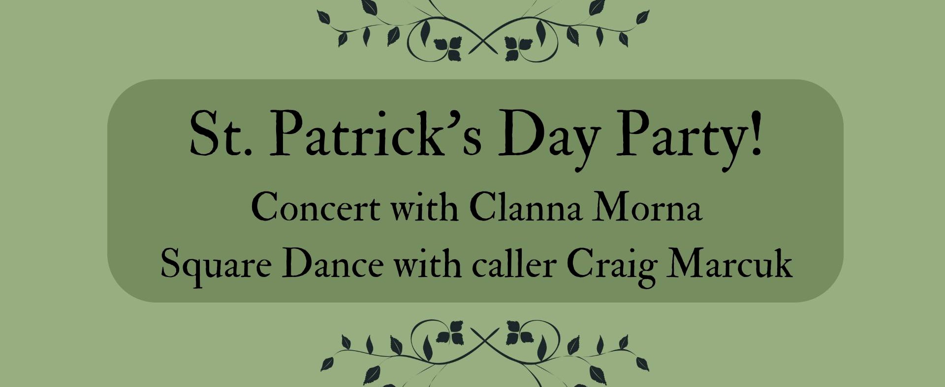 This event will start at 7 pm with a 1 hour concert with Clanna Morna, followed by a Square Dance called by Craig Marcuk!