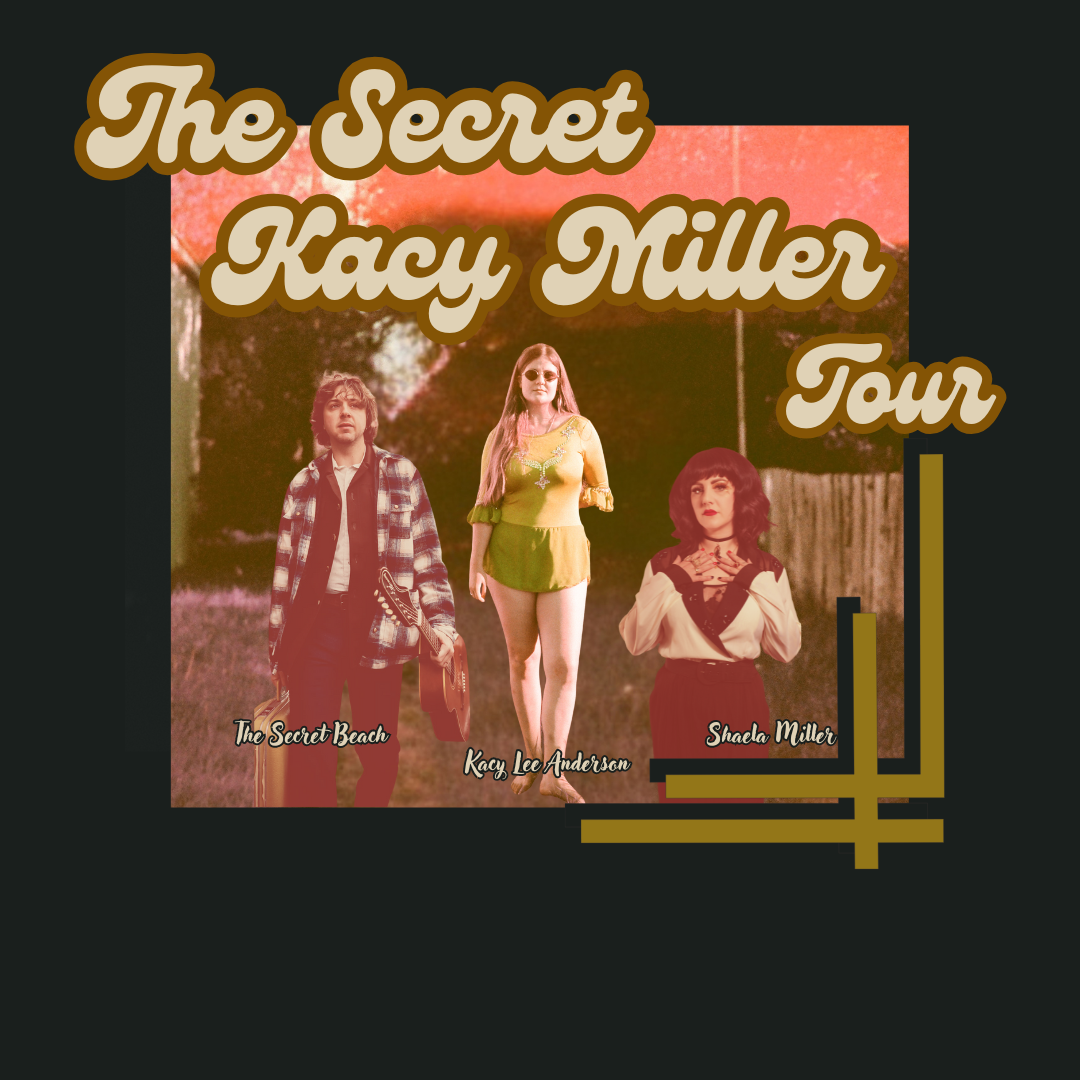 The Secret Kacy Miller Tour brings together The Secret Beach, Kacy Lee Anderson (of Kacy & Clayton and The Waverly Pickers), and Shaela Miller — a triple-threat of songwriting brilliance and sonic mischief. Sometimes they’ll play solo, sometimes they’ll jump in on each other’s sets, and sometimes they’ll surprise even themselves. Expect harmonies, heartbreakers, foot-stompers, and the kind of moments you only get when friends hit the road together.